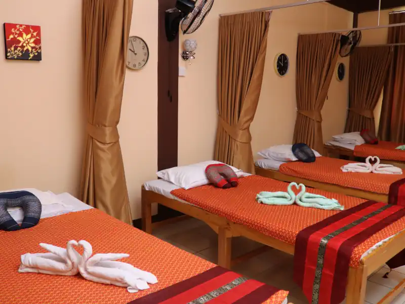 - ชั้น 3 มีเตียงนวดน้ำมัน 4 เตียง โดยแต่ละเตียงกั้นด้วยผ้าม่านหนา เพื่อความเป็นส่วนตัว